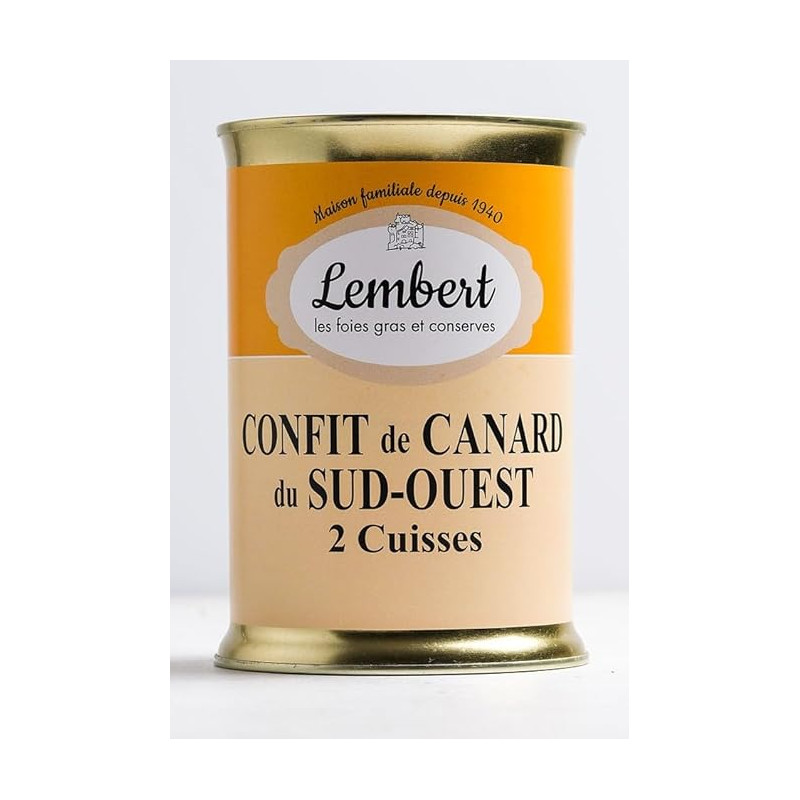 2 membres entiers de canard, cuisses confites sous la graisse 50 % graisse de canard, sel, poivre